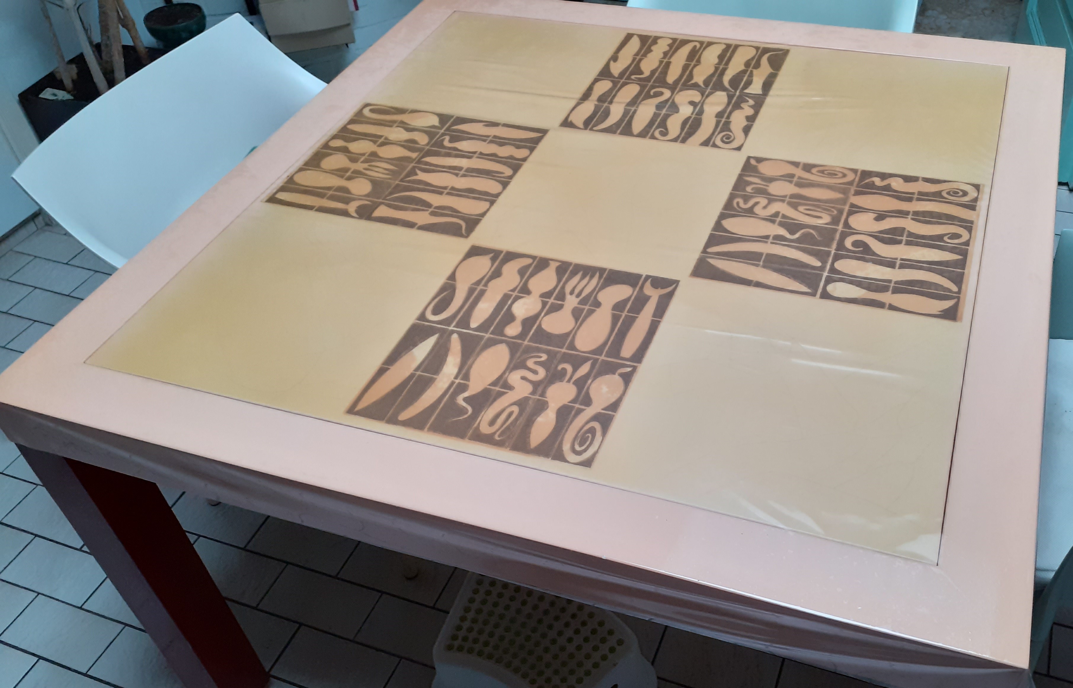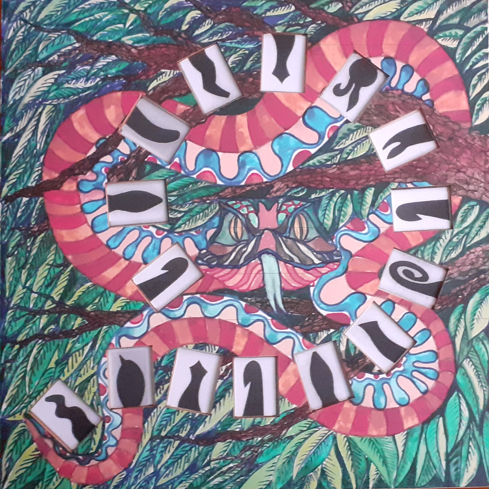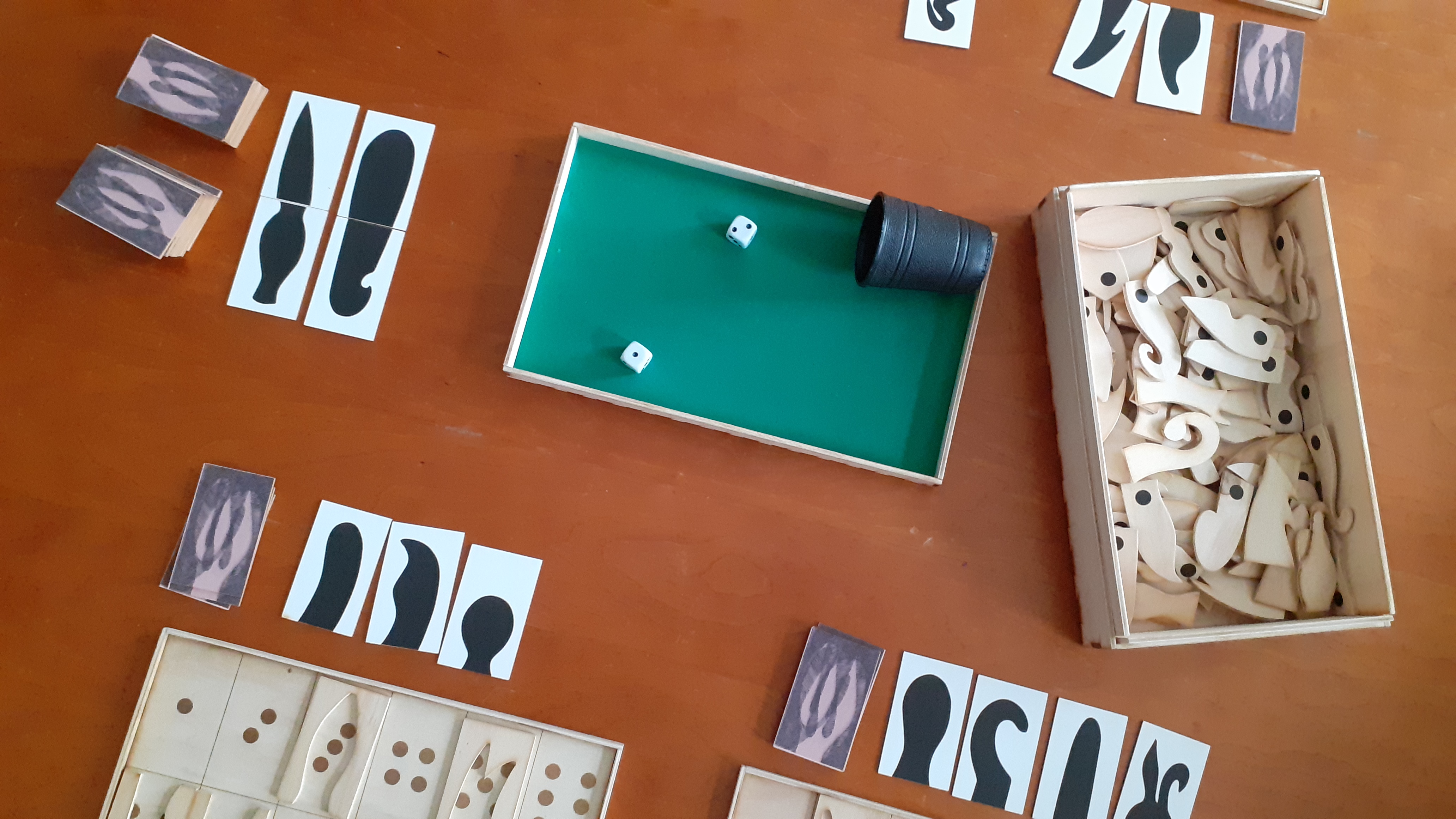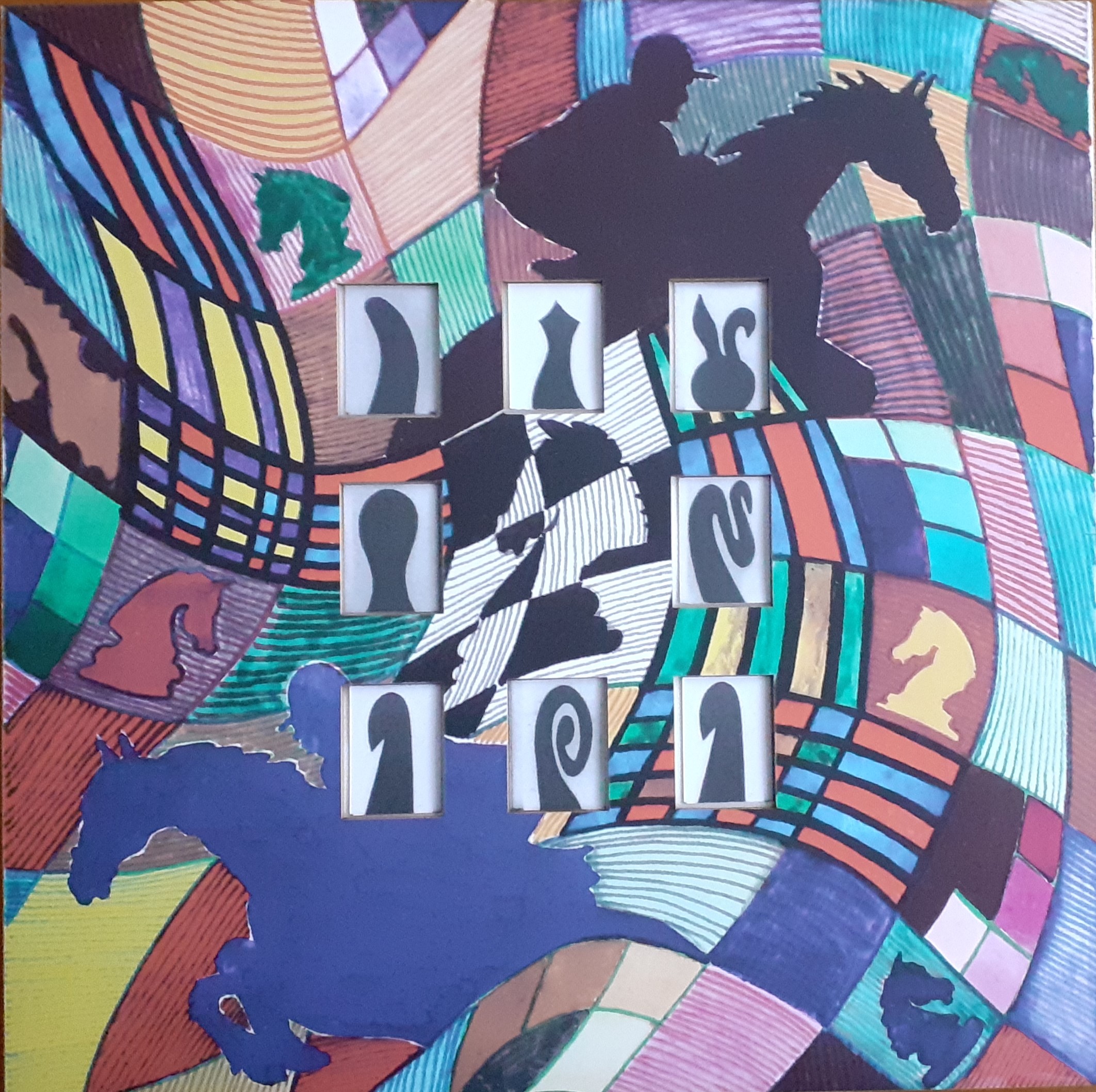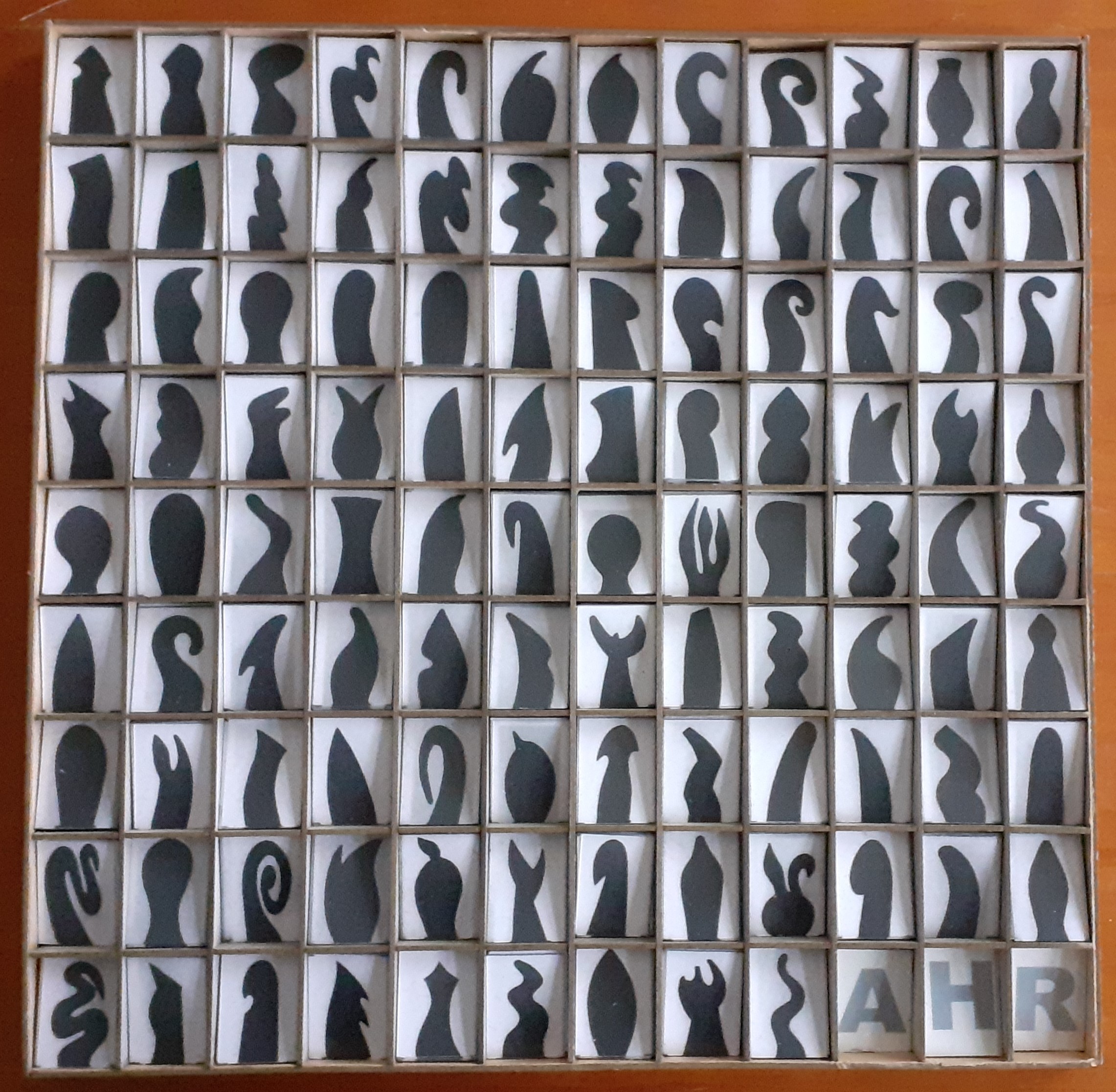 ToKeys: Een gezelschapsspel rechtstreeks ontwikkeld uit de vormentaal van de houtskooltekeningen.