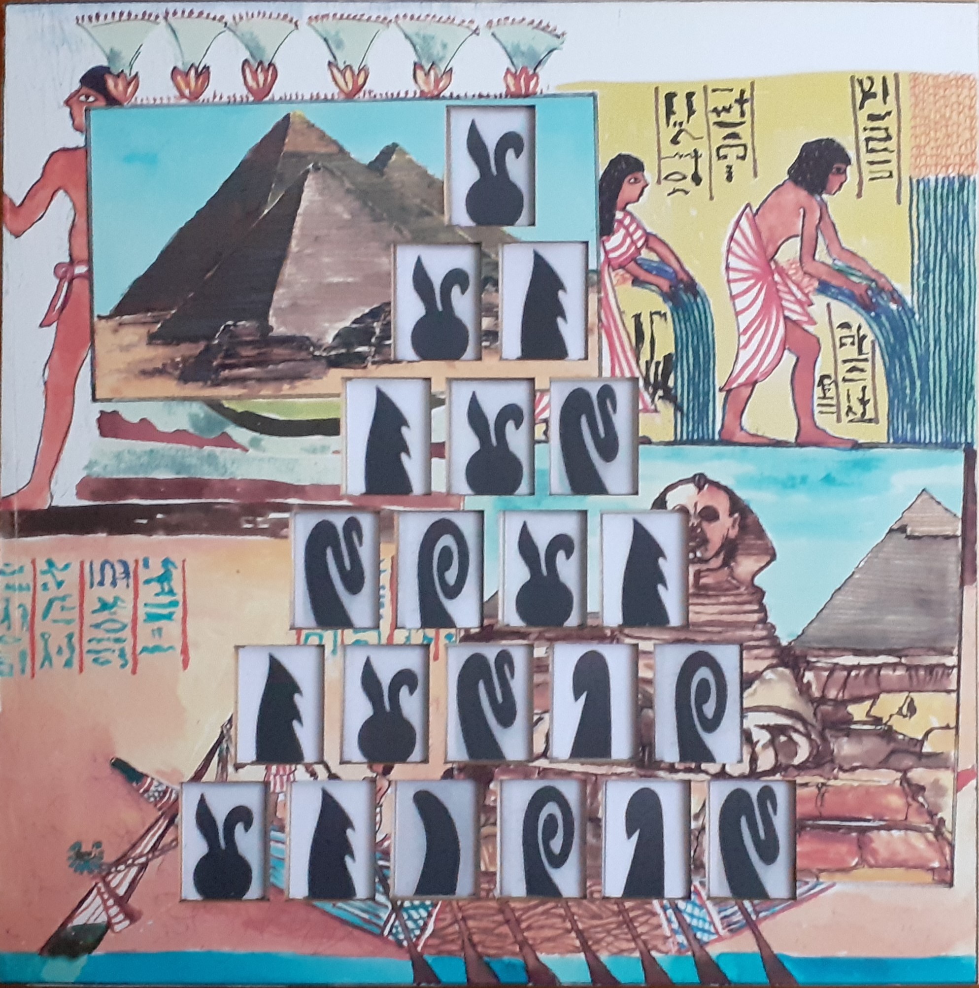 ToKeys code: Een woordpuzzelspel om van een zesletterwoord naar een 8-, 10-, 12-, 15-letterwoord te gaan. De abstracte vormen uit deze reeks krijgen in dit spel een letterwaarde.