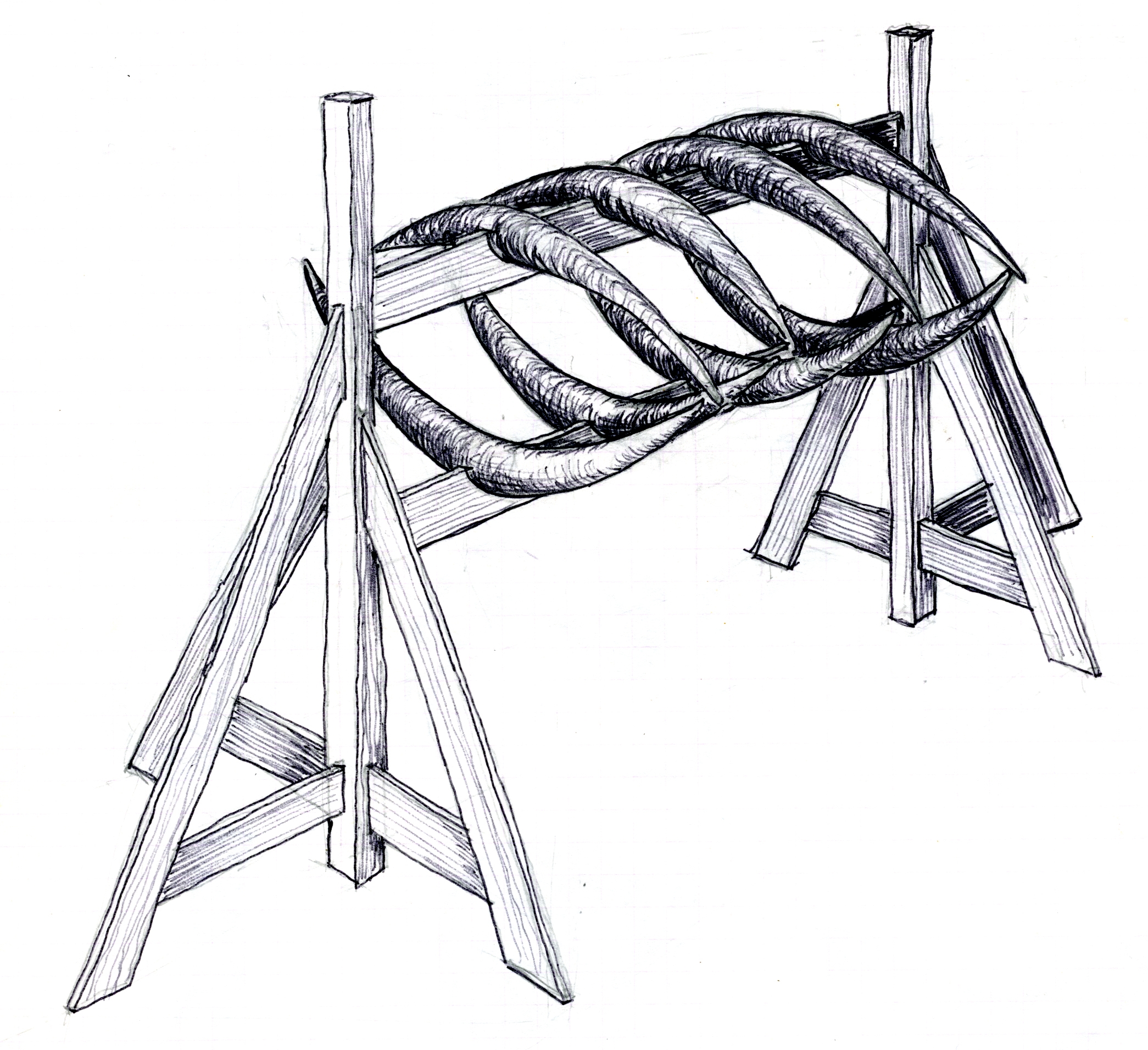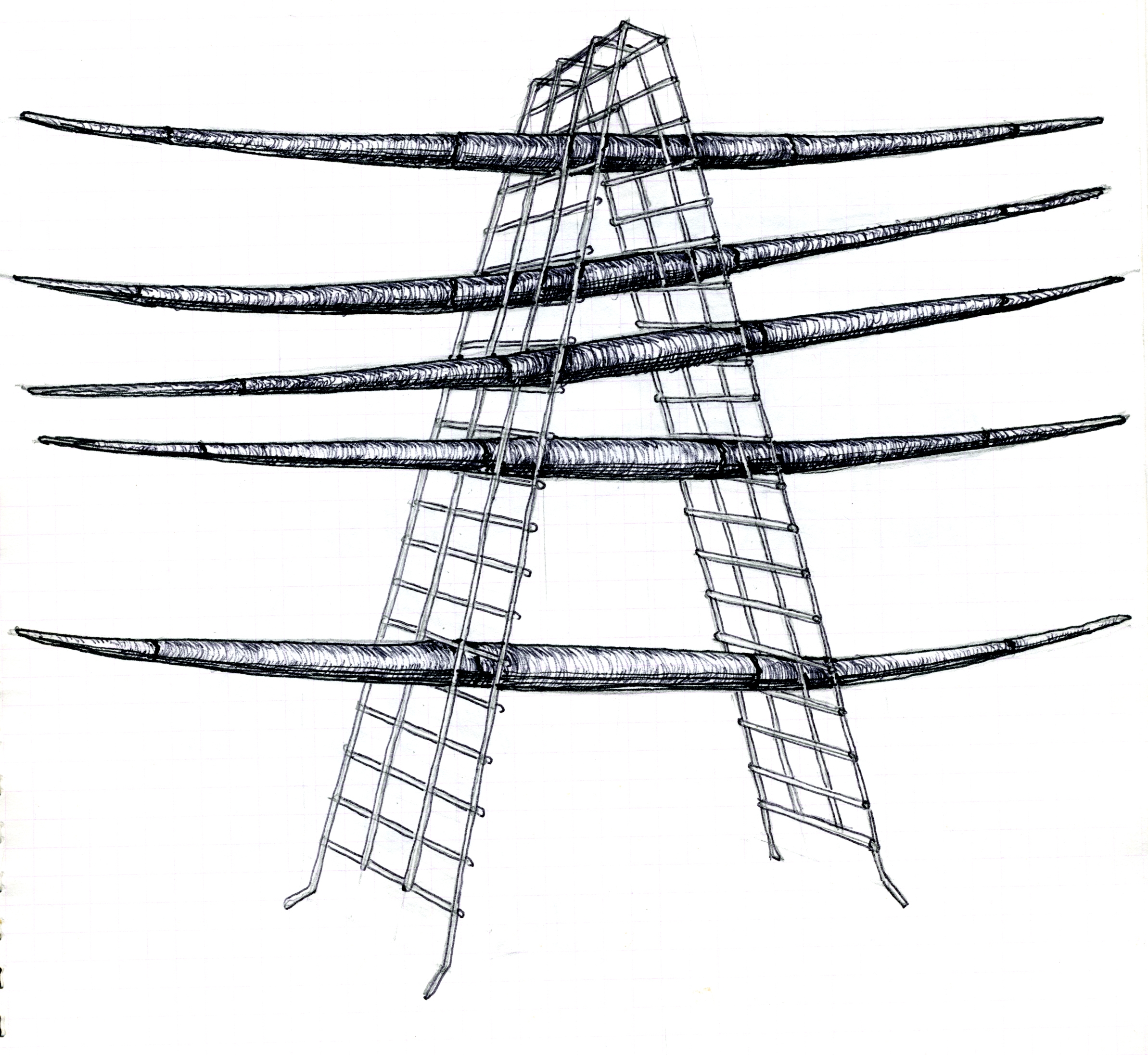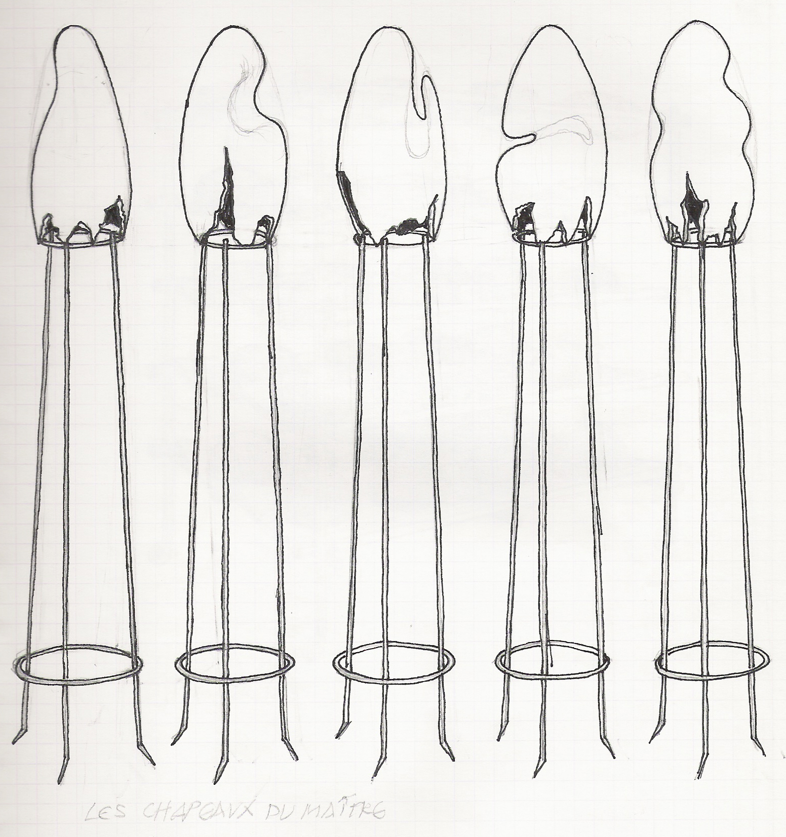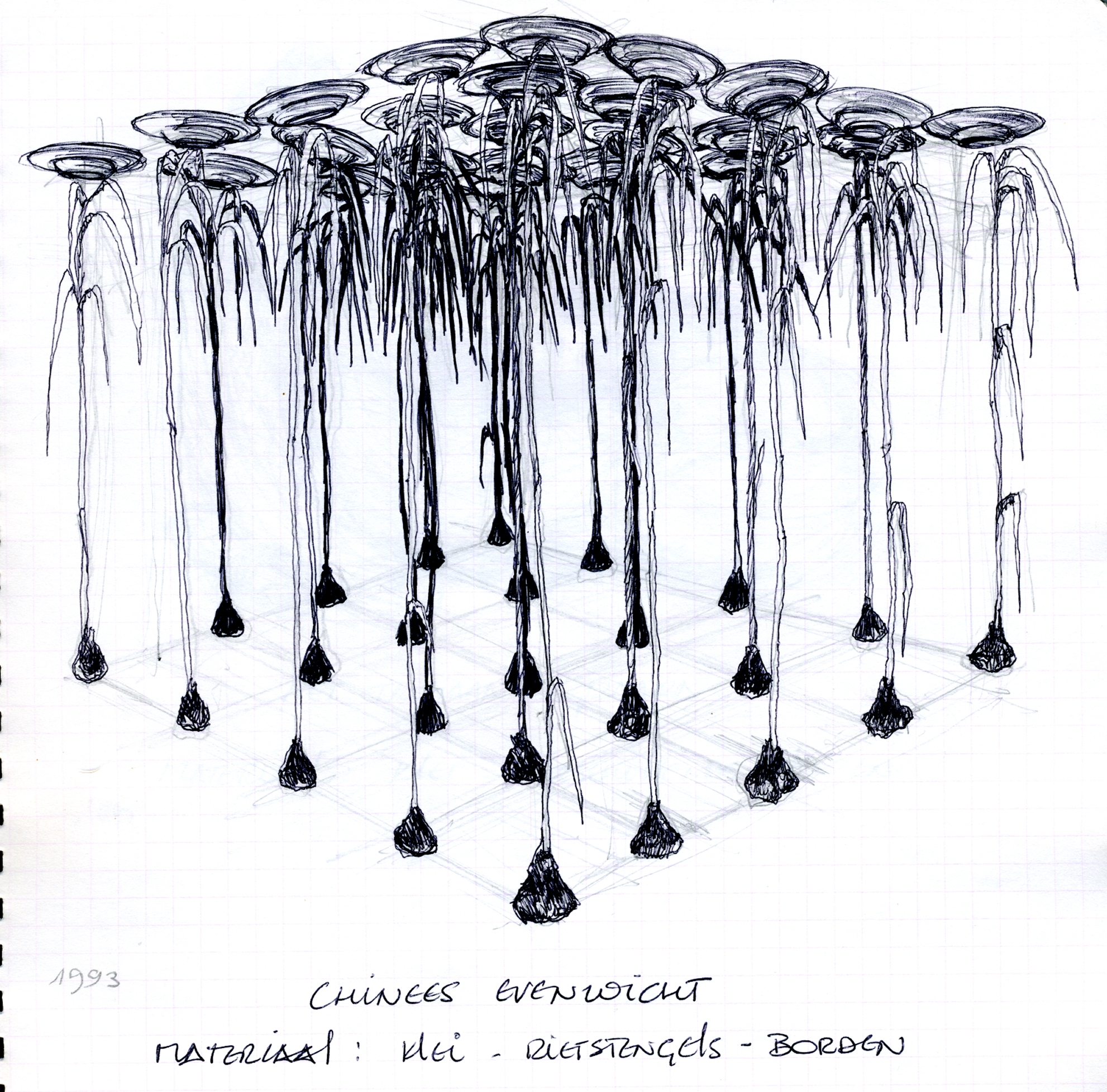 Tekeningen met balpen in een schriftje. Het zijn gewoon hersenspinsels die als voorontwerpen kunnen dienen. Veel ideeën zijn evenwel niet uitgevoerd. Enkele deelelementen krijgen hun beslag soms wel terug vinden in een ander project.