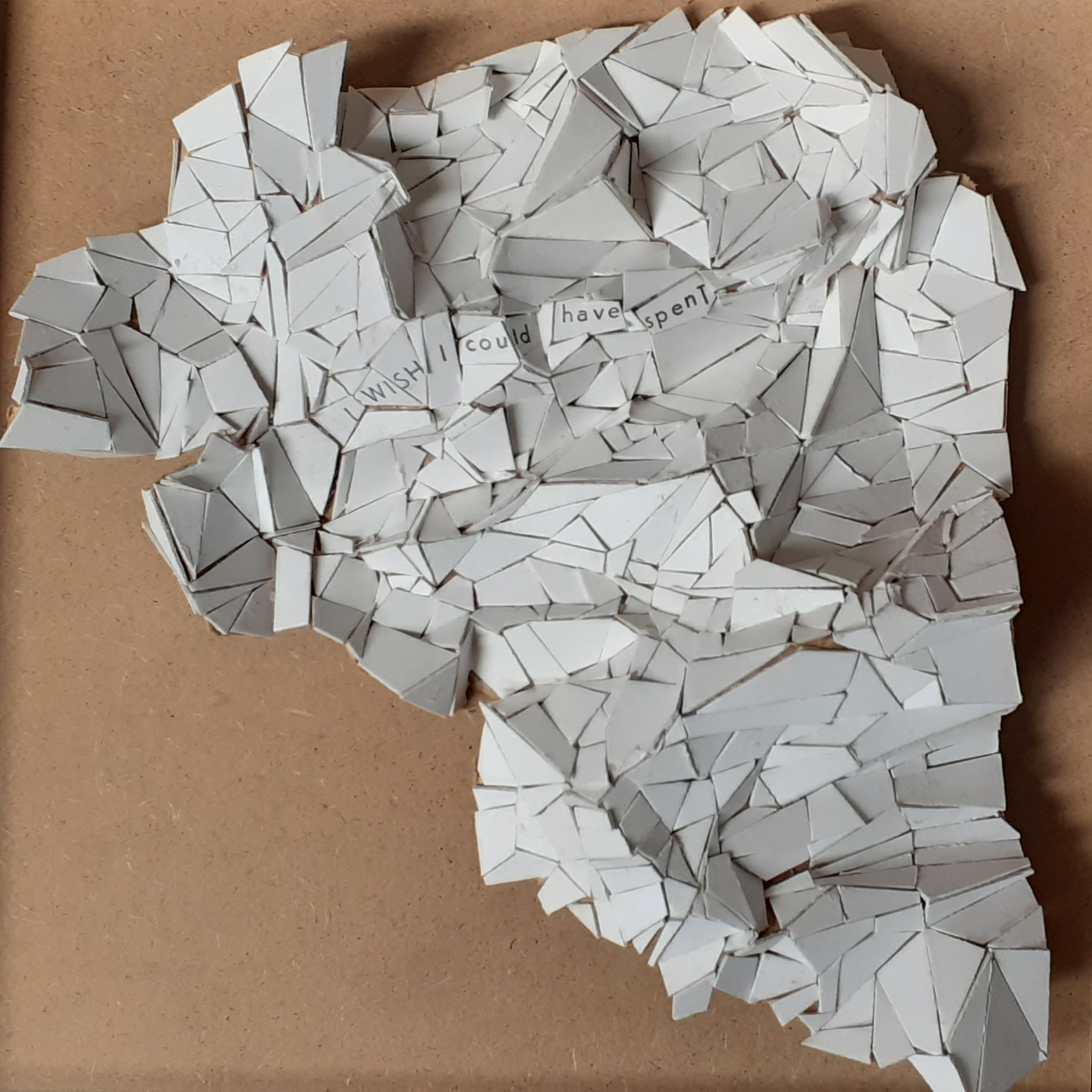 Een prop papier in de prullenmand. Open geplooid: een, twee, drie woorden ... en verder niets. Staren op een leeg veld.